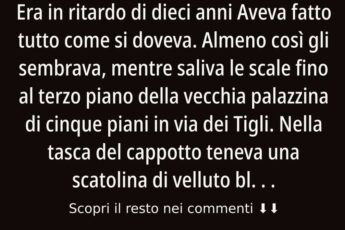 Era in ritardo di dieci anni Aveva fatto tutto come si doveva. Almeno così gli sembrava, mentre saliva
