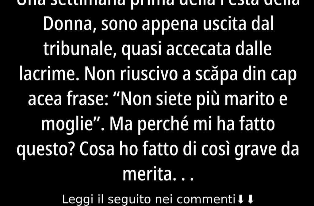 Una settimana prima della Festa della Donna, sono appena uscita dal tribunale, quasi accecata dalle lacrime. Non riuscivo a scăpa din cap acea frase: Non siete più marito e moglie. Ma perché mi ha fatto questo? Cosa ho fatto di così grave da meritare una sofferenza così?