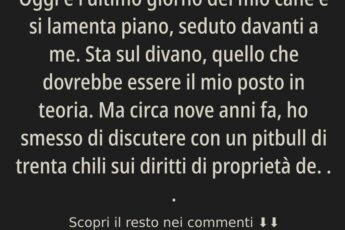 Aspetta qui gli disse, accarezzandolo mentre quello rincorreva la sua mano con il muso. Mia moglie ti troverà.