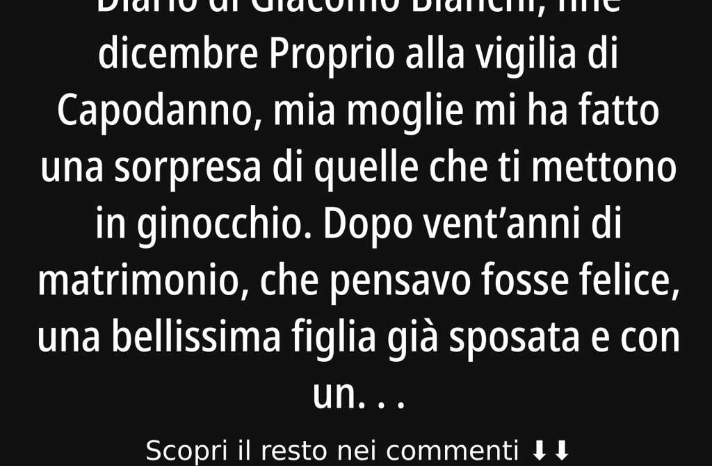 Proprio alla vigilia di Capodanno, mia moglie mi ha fatto una sorpresa di quelle che ti mettono in ginocchio. Dopo ventanni di matrimonio, che pensavo fosse felice, una bellissima figlia già sposata e con un nipotino che ci faceva sentire pieni, credevo che non ci mancasse nulla. Bastava vivere e godersi la famiglia.