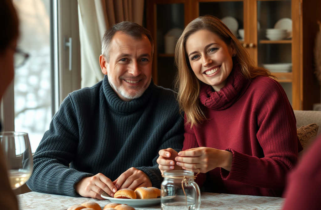 La sera, proprio alla vigilia di Capodanno, Yuri venne con alcuni dolci sua moglie ne aveva appena sfornati. Poi Nina si unì per il tè e i dolci, e sentivano nel cuore un calore.