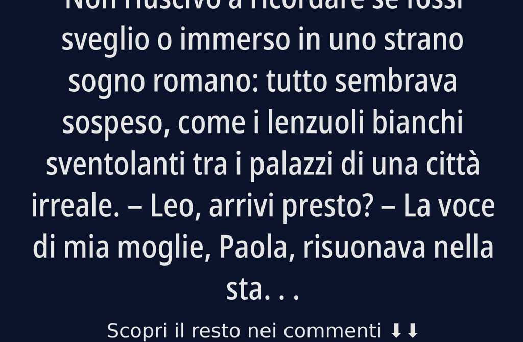Non riuscivo a ricordare se fossi sveglio o immerso in uno strano sogno romano: tutto sembrava sospeso, come i lenzuoli bianchi sventolanti tra i palazzi di una città irreale.