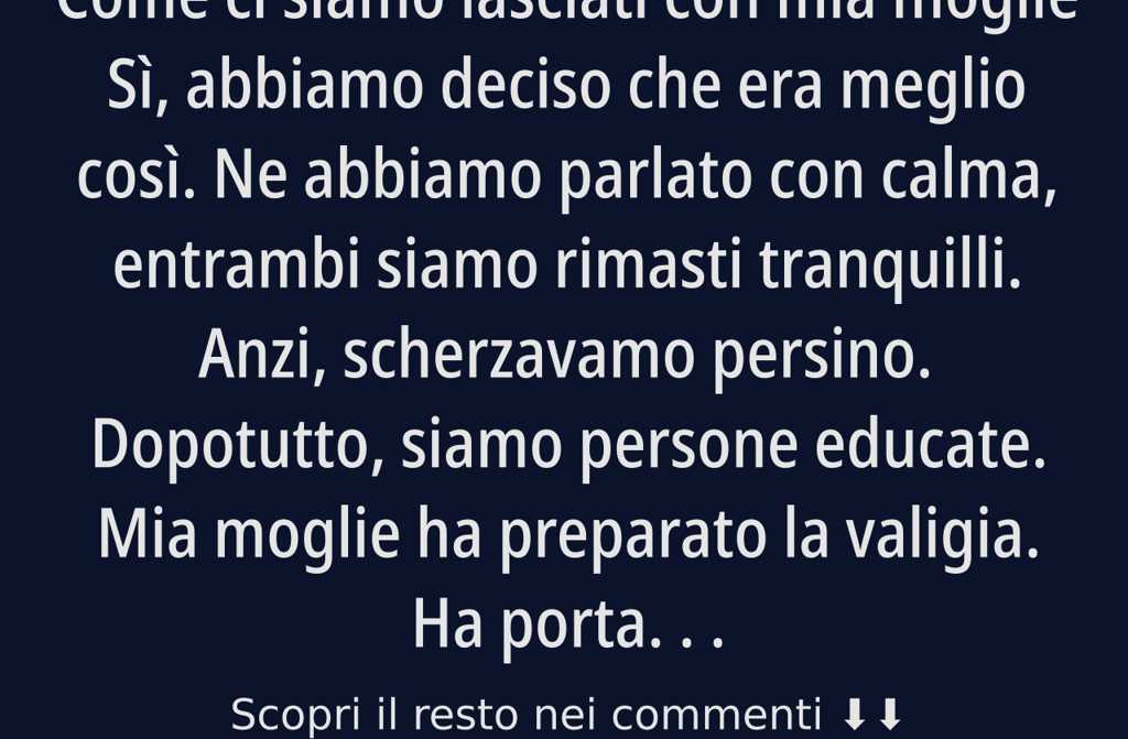 Come ci siamo separati io e mia moglie: una decisione tranquilla tra persone civili, lei parte con l…