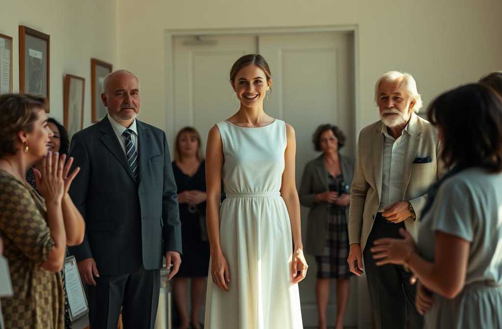 Quando la mandarono a provare il vestito, lei non ne aveva nessuna voglia. Giulia si immaginava labito pieno di balze e strass, proprio come piaceva alla suocera e alla sorella, che di buon gusto non ne capivano niente. Quando i parenti sentirono il suo rifiuto, la chiamarono ingrata e si arrabbiarono moltissimo. Ma a lei non importava; aveva già pensieri per conto suo: la maturità, gli esami, la nascita imminente del bambino.
