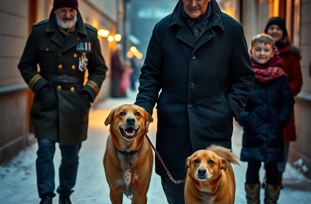 Da allora, ogni sera, la gente vedeva passare una strana compagnia: un uomo anziano in divisa, un ragazzo e un cane rosso spelacchiato.