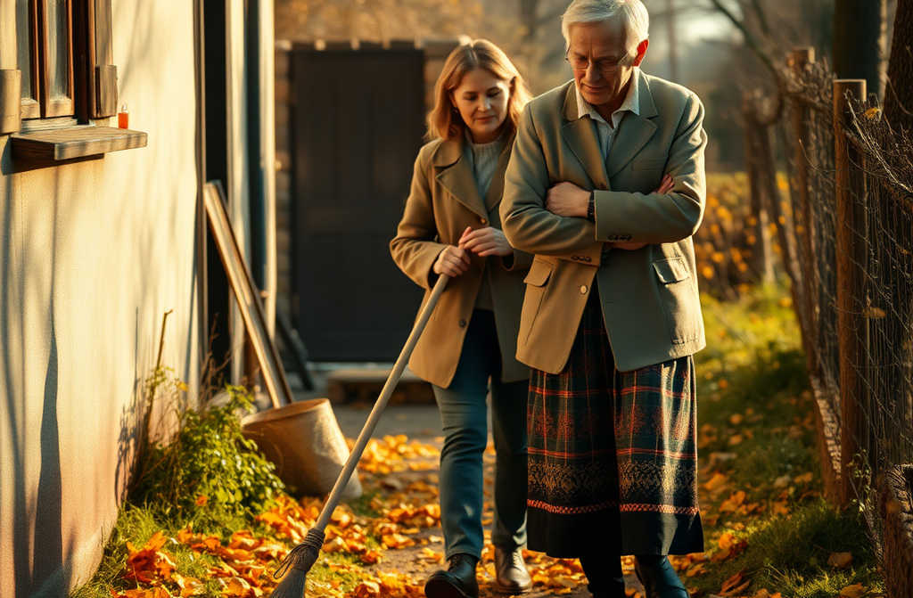 Lei lo guardò, appoggiata alla scopa: