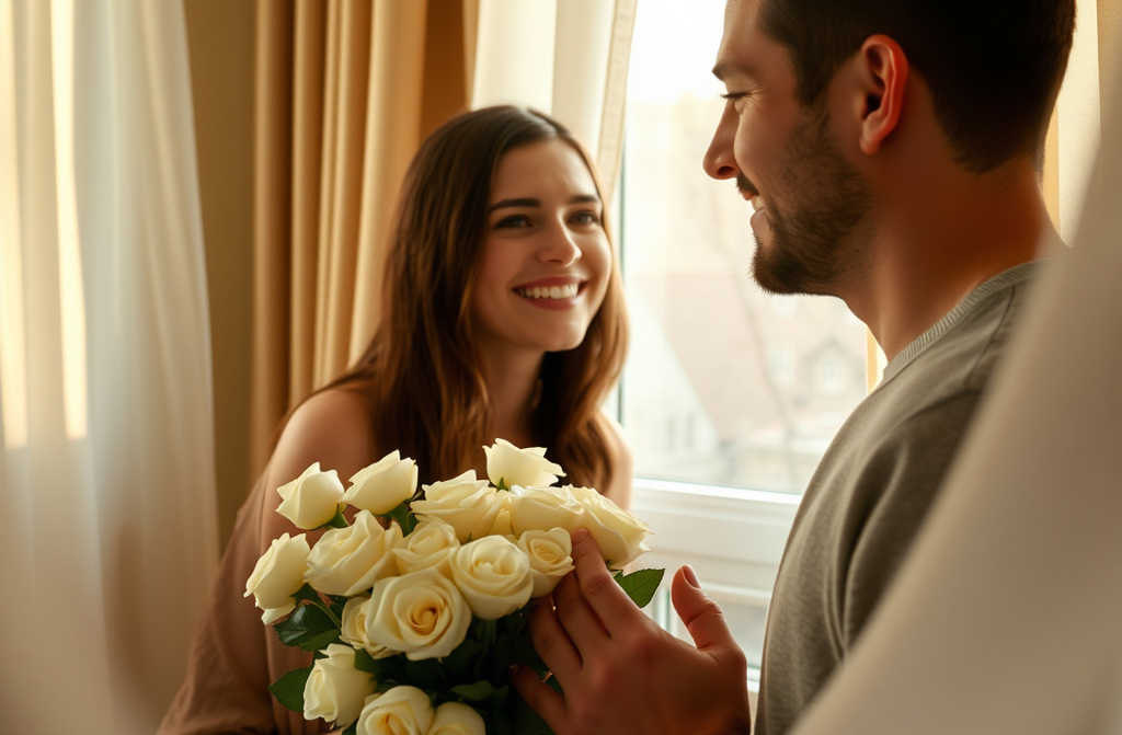 Aprii la porta e lo vidi con un mazzo di rose bianche, come quel giorno lontano.