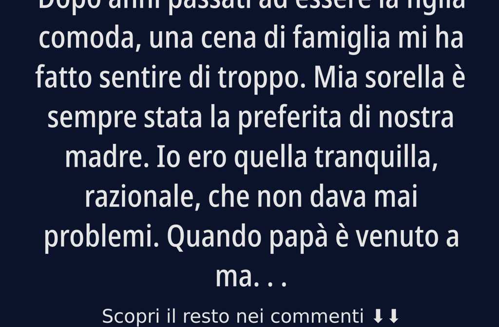 Dopo anni passati come la figlia “comoda”, una cena di famiglia mi ha fatto sentire superflua. Mia s…