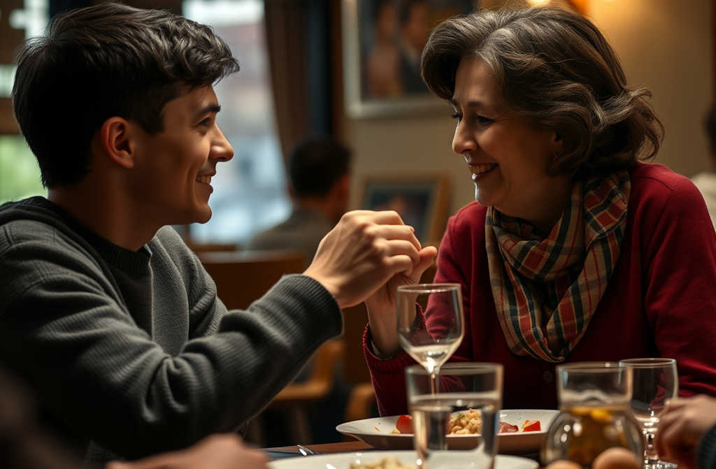 Ci dirigiamo verso una piccola trattoria accogliente a Firenze. Rosa mi prende la mano, così tenera come quando ero bambino. Quando il cameriere porta il menù, lo leggo ad alta voce perché a lei è difficile leggere il carattere piccolo.