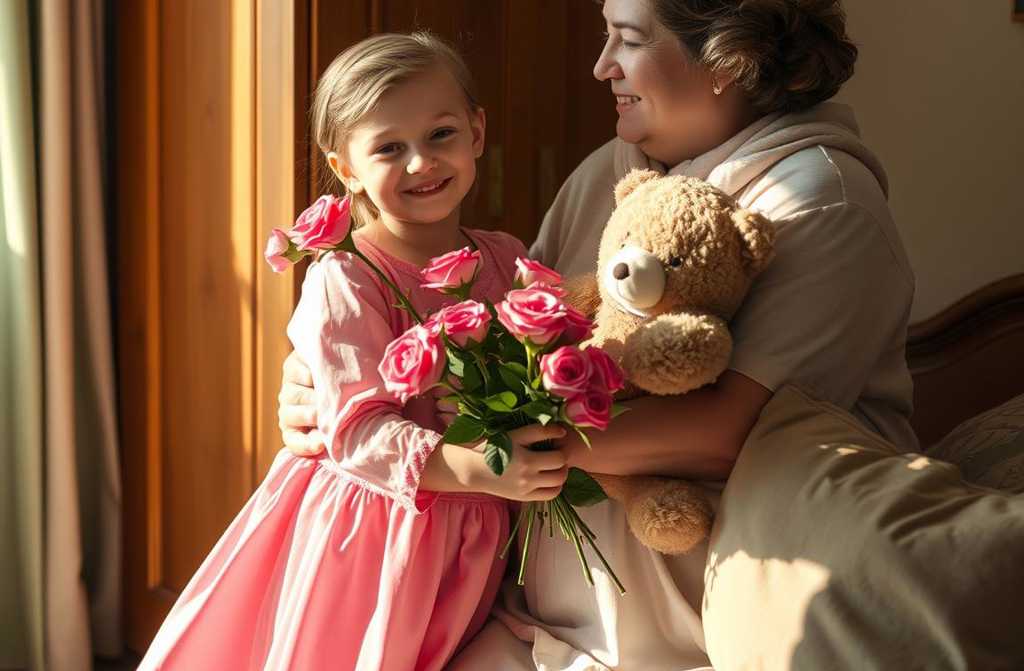 La sera, mamma e nonna hanno apparecchiato una tavola festosa: patate al forno appena sfornate, aspic che tremolava nei piccoli bicchieri, cetrioli croccanti dal ripostiglio e una torta enorme decorata con rose di crema rosa. Manca una sola rosa sulla torta: lho presa prima che tutti fossero seduti. Quando papà è tornato, teneva un mazzo diverso: semplici crisantemi bianchi avvolti in carta grigia. Mamma è raggiante, mi abbraccia al collo e ride come una bambina.