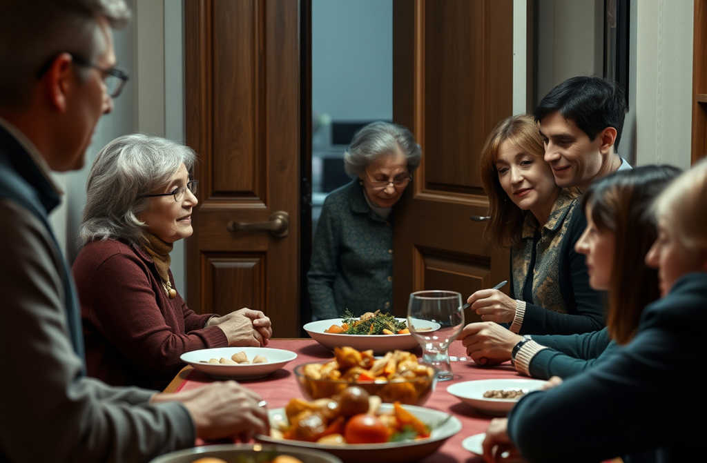 Sono arrivati la sera, in tre: lui, il figlio e la nuora. Ho cucinato una cena abbondante: teglia di arrosto, insalate miste, contorni di stagione. Poi ci siamo seduti a tavola, abbiamo alzato i bicchieri, un brindisi a ritrovarci, dopo così tanti anni di lontananza Poi ho preparato i letti per tutti, al mattino li aspettavano colazioni semplici: panini, tè, caffè caldo che profumava la cucina.