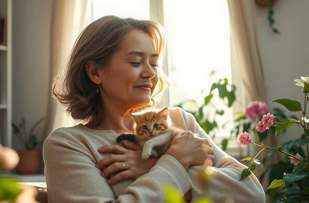 Lei, stringendolo come se dovesse trattenere qualcosa di più di un gatto.
