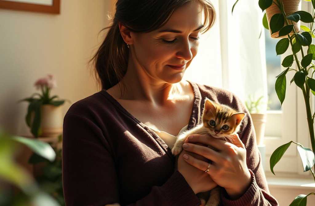 Lei, abbracciandolo come se dovesse trattenere qualcosa di più di un gatto.