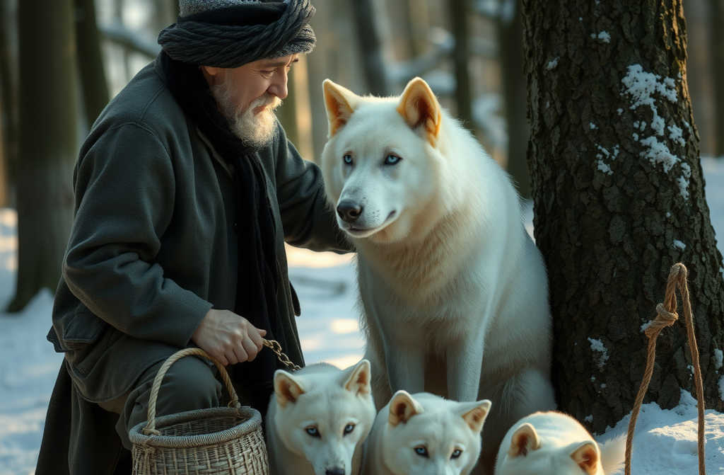 Nei pressi del Bosco della Pigna Nera, un luogo di cui si parlava a bassa voce, incrociò una scena che gli fece trattenere il respiro. Una gigantesca lupa bianca, splendida e feroce, era incatenata con un cavo dacciaio a un faggio. Con le ultime forze, cercava di scaldare i suoi sei cuccioli infreddoliti. Non era una preda, e nemmeno un caso: era stata una vendetta crudele ordita dal noto bracconiere della zona, un uomo che chiamavano tutti il Macellaio.