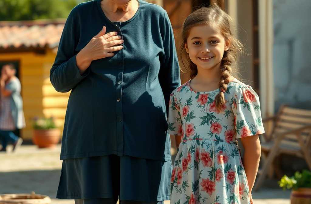 In quel momento, una donna più anziana dal volto coperto di rughe e mani di panettiera si avvicinò alla bambina e le pose una mano sulla spalla.