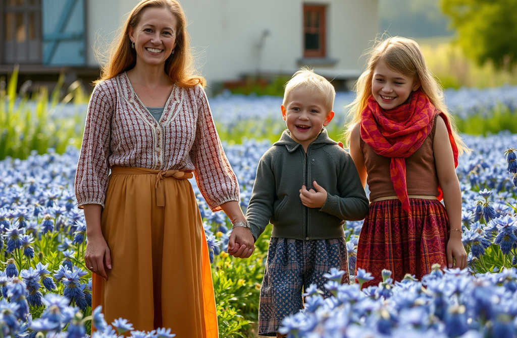 La famiglia entrò in casa, portandoci dentro voci, risa e nuova vita. E sopra il villaggio, nel cielo turchino, un suono lieve era il vento che giocava nei fiori di lino, promettendo che giornate nere non ce ne sarebbero più.