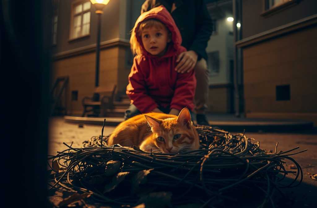 Ma la bambina già si era avvicinata, e scavando tra le foglie trovò lui: il gatto rosso.