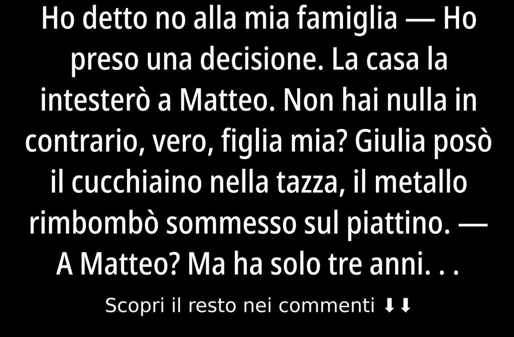 Ogni famiglia reca i suoi dolori segreti, ma arriva un momento in cui dire no significa salvarsi. Proteggere il proprio diritto a esistere, anche senza la convalida altrui. Giulia, dopo una vita, aveva imparato che voler bene non vuol dire sacrificarsi senza limiti, e che a volte scegliere sé stessi è il primo passo per spezzare una catena e iniziare a vivere veramente.