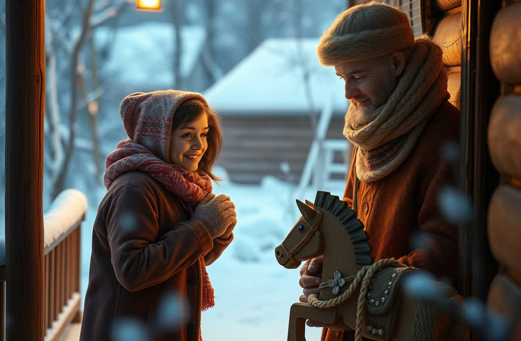 Silenziosa per tutto il tragitto, la neve si fa più fitta, ma la strada al villaggio è battuta, e il carro scivola dolcemente tra le spesse colate.