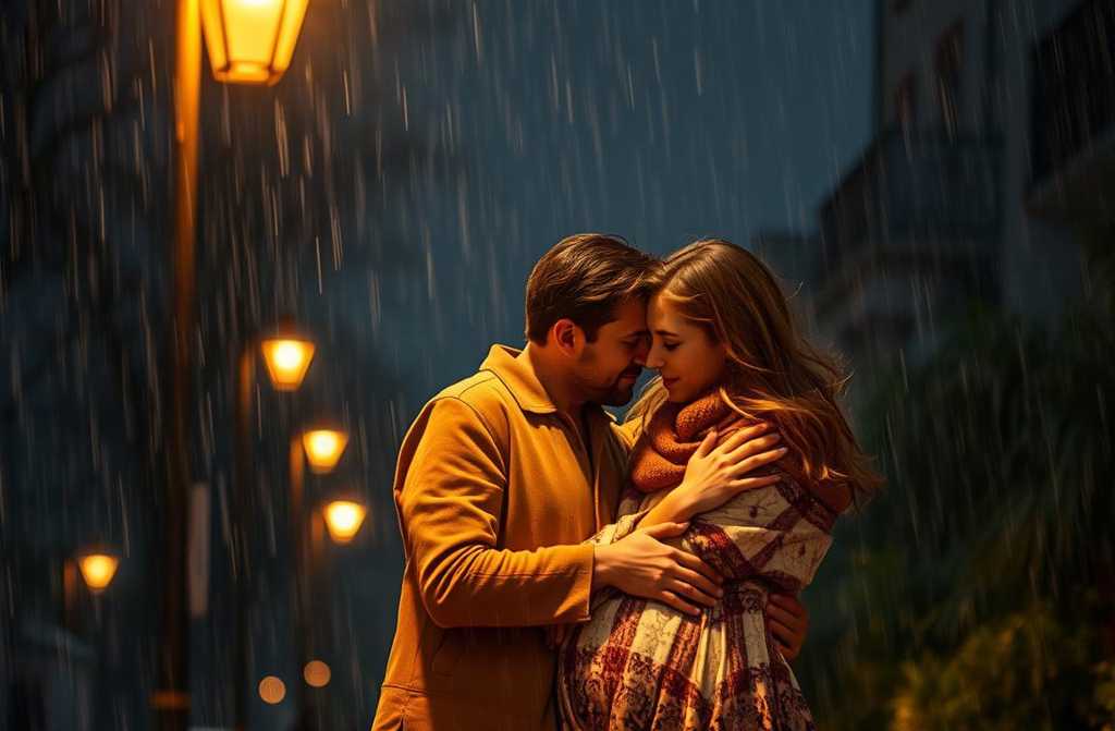 In quel momento, sentirono gli anni di separazione svanire. La solitudine aveva finalmente fine. Come se una luce avesse squarciato il buio, riscaldando i loro cuori con un calore che ridava gioia alle loro anime. Il cuore batteva forte, seguendo il ritmo della pioggia. Le gocce scivolavano sui loro volti, mescolandosi a quel bacio profondo, tra occhi chiusi e labbra serrate, trasmettendo un senso di rinascita, come se la vita ricominciasse in quell’attimo.