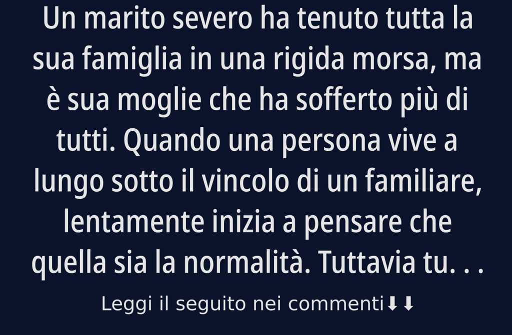 Mio marito è sempre stato un uomo severo e esigente. È il capo della nostra famiglia e prende tutte le decisioni importanti. Non ammette mai compromessi ed è abituato a comandare senza ascoltare gli altri. Tutto deve andare come dice lui, senza eccezioni. Il suo carattere non era un mistero prima del matrimonio, ma le nostre sorti erano state decise dalle nostre famiglie. Così era la tradizione.