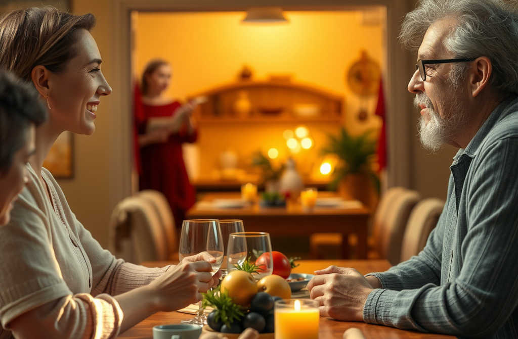 Arrivata letà della pensione, Giulia desiderava celebrare con una grande festa. Si rivolse al figlio chiedendo che usasse i soldi ricevuti per comprare cibo e regali per i nipoti. Il figlio e la nuora mandarono temporaneamente i bambini in campagna dai nonni paterni, per evitare tensioni, e si prepararono attentamente per accogliere gli ospiti. Allarrivo di Giulia, la festa scorse gioiosa fino a notte fonda.