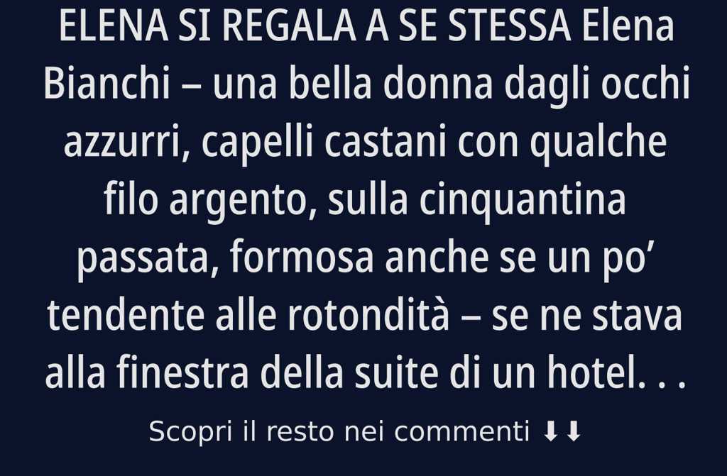 Antonella Bianchi occhi azzurri, capelli castani e un fisico ancora sinuoso benché la bilancia sembri non perdonare più da un po, è ferma davanti alla finestra della suite di un hotel a cinque stelle sul mare. Sta sorseggiando un bicchiere di liquore alle noci e riflette tra sé e sé: