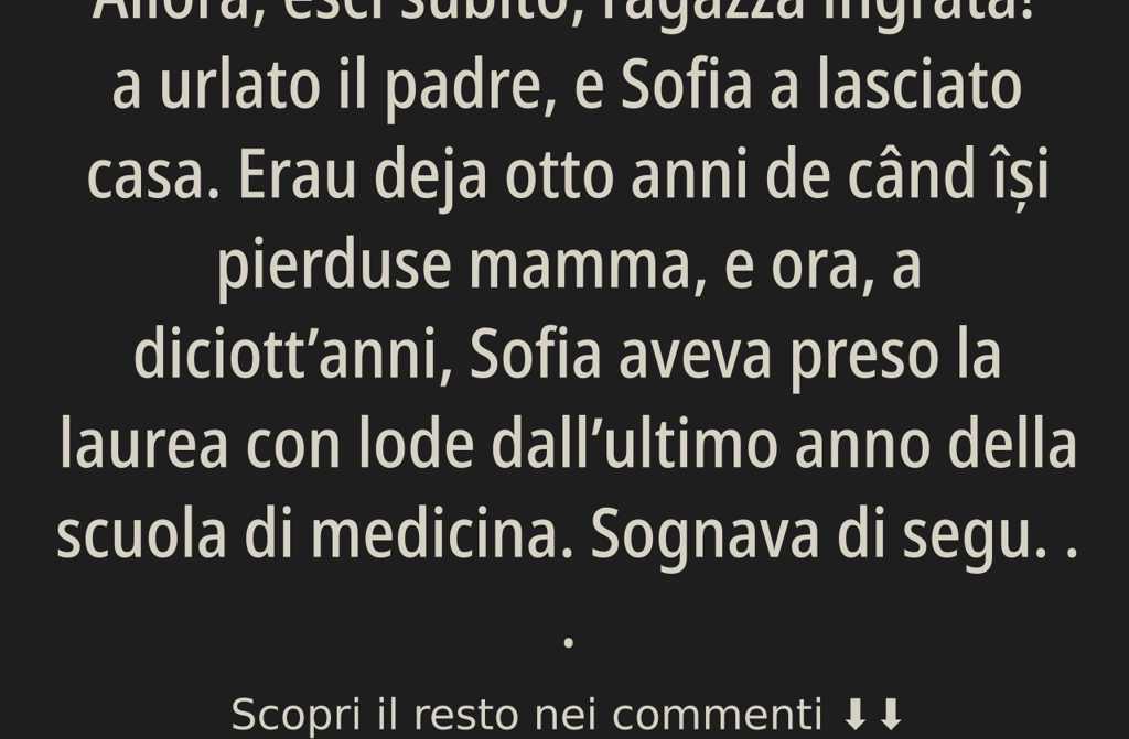 Sofia si sentiva davvero combattuta, ma era determinata a non rinunciare al suo sogno. Così si è sistemata in uno studentato e ha iniziato a lavorare part-time in una piccola caffetteria vicino al campus. Una sera, finendo il suo turno, ha notato un uomo moro, elegantissimo, seduto nella caffetteria. Sembrava fuori posto la sua presenza era molto più adatta a un ristorante raffinato che alla semplicità del bar.