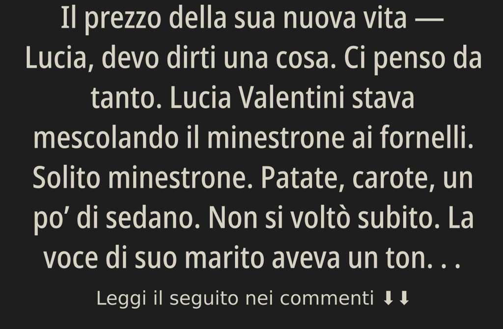 Lucia Valentini stava mescolando il minestrone ai fornelli. Solito minestrone. Patate, carote, un po di sedano. Non si voltò subito. La voce di suo marito aveva un tono diverso dal solito, non quello che usava quando si trattava di bollette o per lamentarsi del lavoro. Era un tono deciso, preparato.