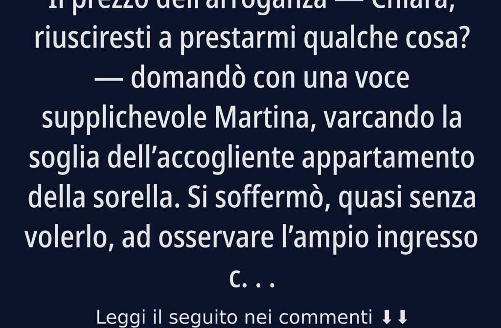 Chiara, riusciresti a prestarmi qualche cosa? domandò con una voce supplichevole Martina, varcando la soglia dellaccogliente appartamento della sorella.