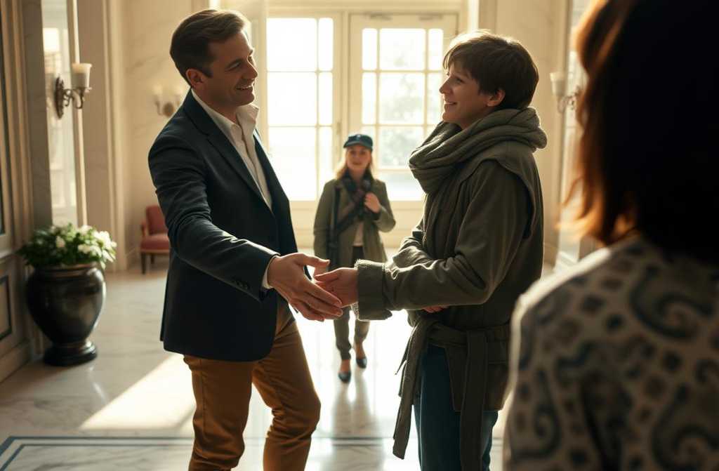 Andrea esamina il ragazzino: i vestiti sono logori, i capelli arruffati, la pelle bruciata dal sole, e un odore di strada e sudore lo avvolge. Andrea, al contrario, profuma di profumo di nicchia. Per qualche minuto restano senza parole, il tempo sembra fermarsi. Andrea si avvicina piano. Il ragazzino indietreggia un passo, ma Andrea parla dolcemente: «Non aver paura. Non ti farò del male». Il bambino resta in silenzio, i suoi occhi tradiscono lansia. «Come ti chiami?», chiede Andrea. Dopo un attimo di esitazione risponde a bassa voce: «Mi chiamo Luca». Andrea sorride e allunga la mano. «Io sono Andrea. Piacere di conoscerti, Luca». Luca guarda la mano esitante; nessuno lo aveva mai salutato così. Dopo un momento, anche lui stringe la mano. Quando le loro mani si incontrano, Andrea avverte una strana connessione, quasi elettrica.