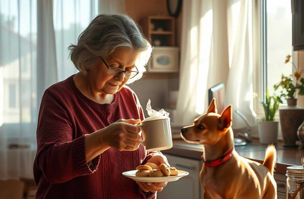 Dai, facciamo il tè, dice, tirando fuori una scatola di biscotti dal mobile. I biscotti sono il suo vero tesoro: Rino li adora. Nessuno altro li offre, perché il suo piccolo chihuahua ha una dieta speciale, ma a Valentina non piace vedere il cane a digiuno, così compra biscotti per bambini e li concede al suo amico a quattro zampe.