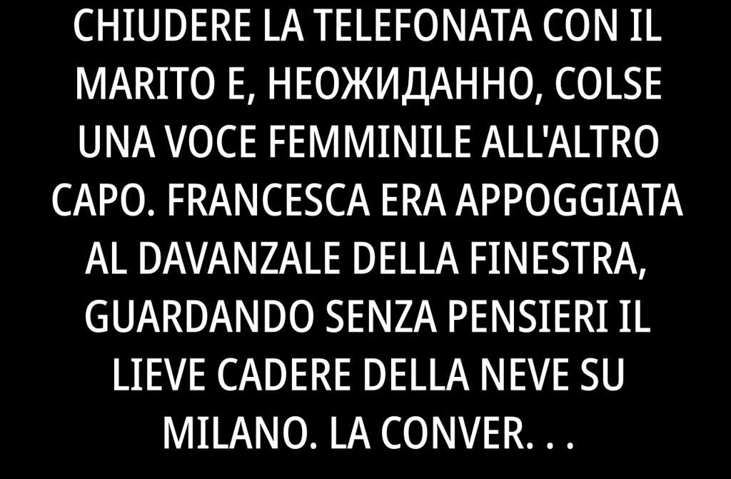 Francesca non fece in tempo a chiudere la telefonata con il marito e, неожиданно, colse una voce femminile all’altro capo.