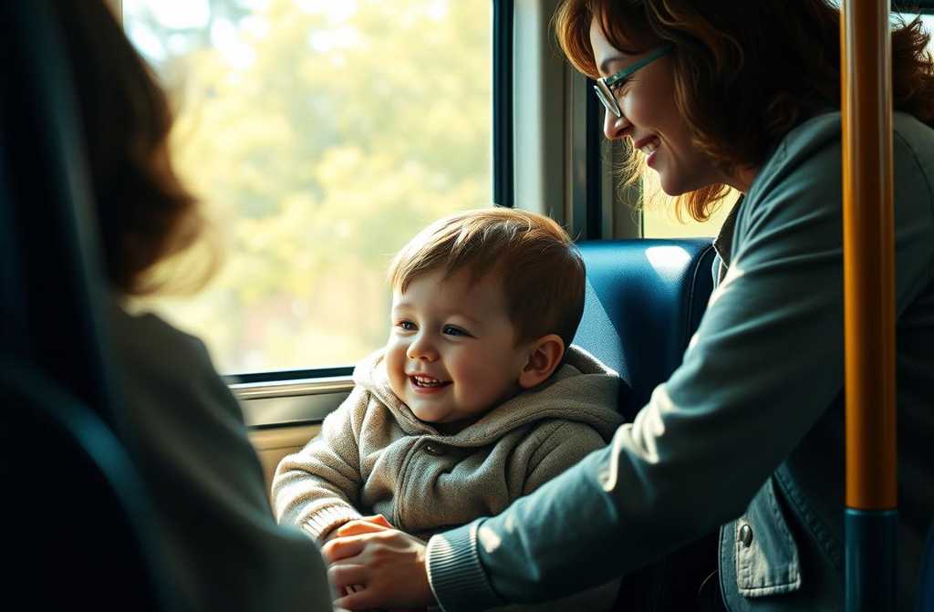 Allora si alzò e iniziò a cercare un altro posto libero per il piccolo. Si guardò intorno, vide i nostri due ragazzini snelli e decise di far sedere il suo bambino accanto a loro.