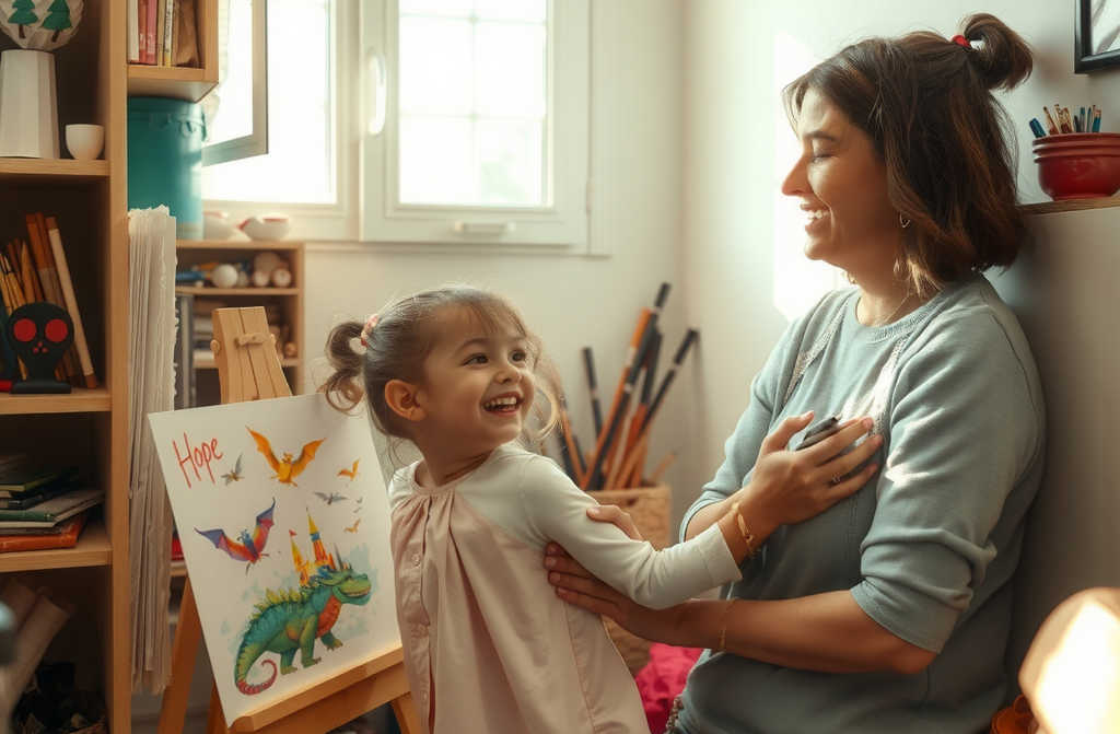 Poi, un giorno di primavera, linsegnante di Chiara bussò alla porta. Veniva a dire che il quadro era stato scelto per unesposizione giovanile; la scuola tutta si era commossa davanti a quelluniverso di draghi e castelli. Francesca e Chiara si abbracciarono forte, tra occhi lucidi e sorrisi: quella stanza piena di colori aveva generato un nuovo inizio.