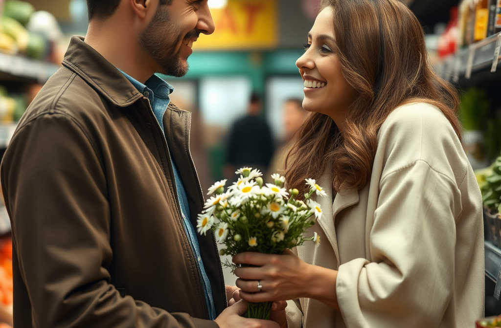 Il rapporto è nato piano piano: Marco mi portava un mazzo di margherite ogni giorno, io lo viziavo con delle praline al cioccolato, e a volte restavamo fino a tardi in magazzino a chiacchierare quando non c’era nessuno in fila. Sembrava una scenetta da film, finché non è durato circa due settimane.
