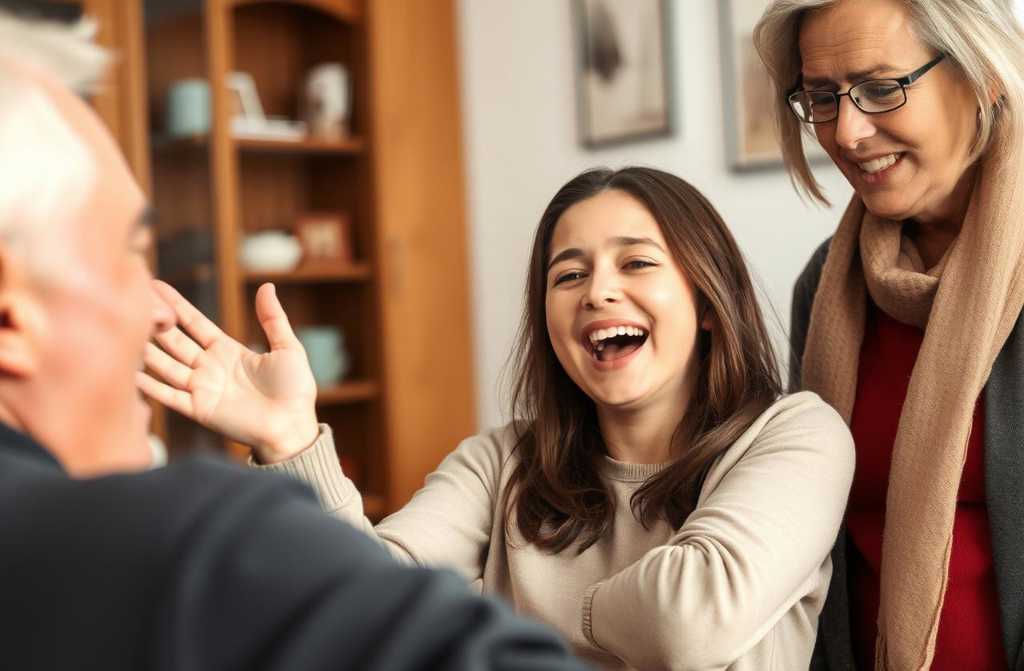 Giovanna è tornata a casa di corsa, si è lavata le mani in fretta ed è subito andata in cucina. I suoi genitori erano già seduti a tavola.