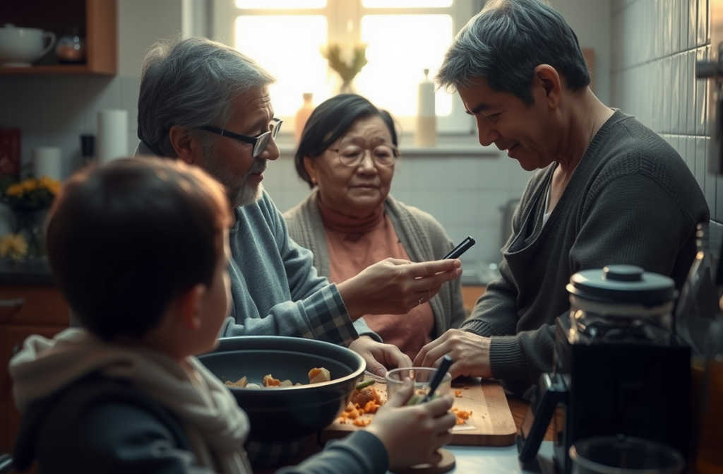 Erminia si siede al tavolo, taglia un pezzo di salame: