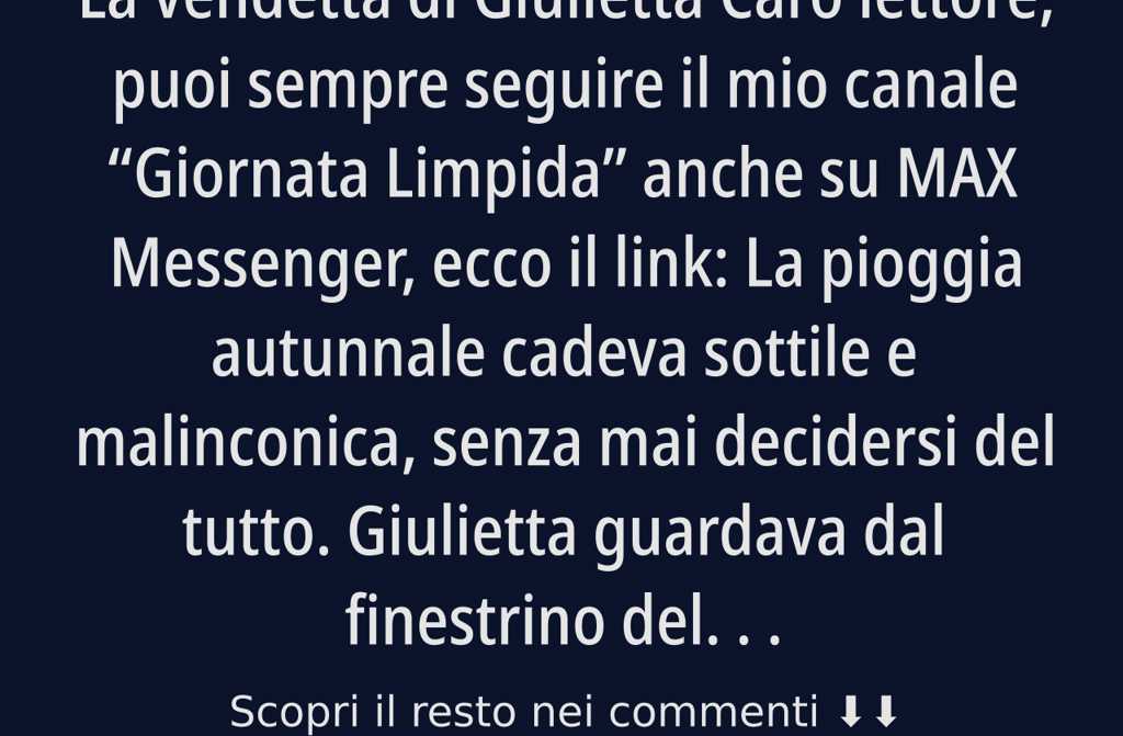 Caro lettore, puoi sempre seguire il mio canale Giornata Limpida anche su MAX Messenger, ecco il link: