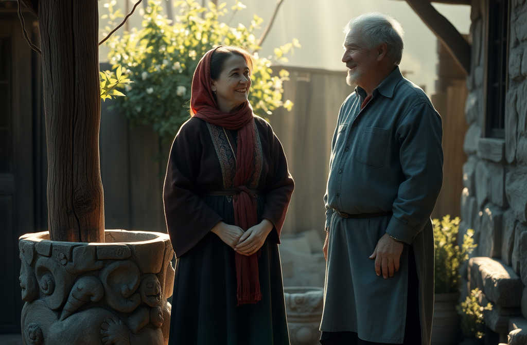 Pasquale, vai pure dalle tue belle vedove, ché qui tra me e Gennaro c’è da fare ben altro! Qui ancora nessuno ha ammirato la bellezza del pozzo tutto scolpito Perdonami, Gennaro mio, per i pensieri strani e per non averti capito prima. Avevo la felicità in mano e non la vedevo. Ora basta perdere tempo!