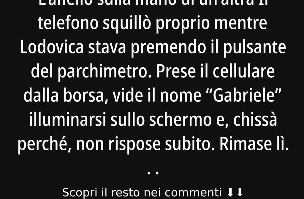 Il telefono squillò proprio mentre Lodovica stava premendo il pulsante del parchimetro. Prese il cellulare dalla borsa, vide il nome Gabriele illuminarsi sullo schermo e, chissà perché, non rispose subito. Rimase lì, un attimo fermo, osservando le cifre lampeggianti del parchimetro, poi si decise e rispose.