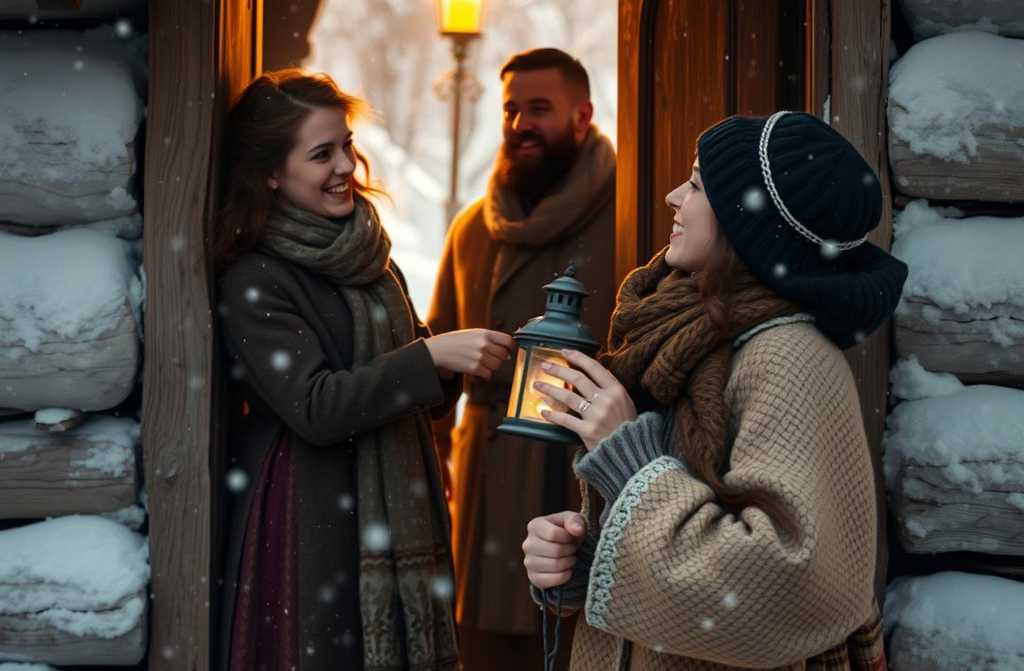 Non provò paura, ma non riusciva a capire chi potesse avvicinarsi a loro in una notte così avversa, tanto meno nella loro piccola casa ai margini del bosco. Aprì la porta e trovò un uomo immerso nella neve, che quasi cadde addosso a lei. Lo chiamò.