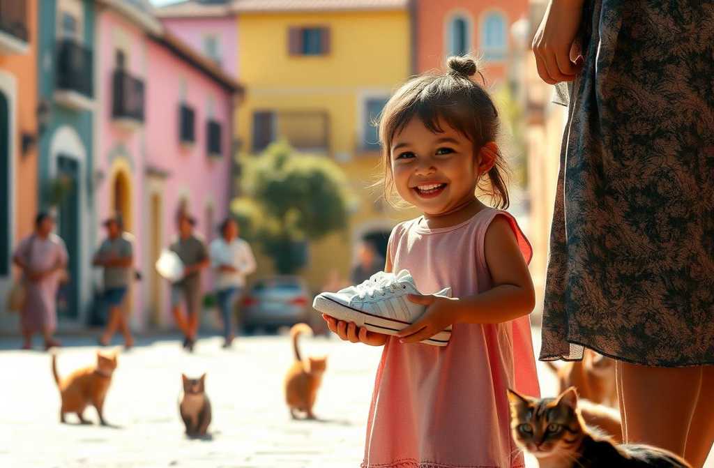 La donna, commossa dalla sua onestà e dalla dignità con cui parlava, prese dal borsone un paio di scarpe da ginnastica quasi nuove e gliele offrì. Erano bianche, con una striscia blu sui lati, e sotto il sole del pomeriggio sembravano brillare. Anna le strinse al petto come fossero un tesoro. Quella sera non volle toglierle neanche per dormire, e le pulì con cura prima di coricarsi, mentre Matteo la guardava incuriosito e i gatti del vicinato annusavano quegli strani oggetti nuovi.