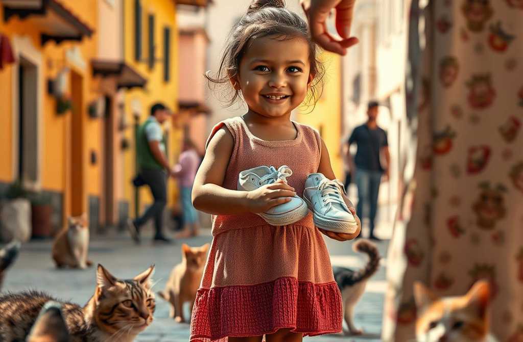 La donna, commossa dalla sua onestà e dalla dignità con cui parlava, tirò fuori dalla borsa un paio di scarpe da ginnastica quasi nuove e gliele consegnò. Erano bianche, con una striscia azzurra sul fianco, e sembravano brillare sotto il sole del pomeriggio. Stella le strinse forte, come fossero un tesoro affidatole. Quella sera non volle toglierle nemmeno per dormire, e le pulì con cura prima di coricarsi, mentre Matteo la guardava incuriosito e i gatti del vicinato si avvicinavano ad annusare quegli oggetti nuovi.