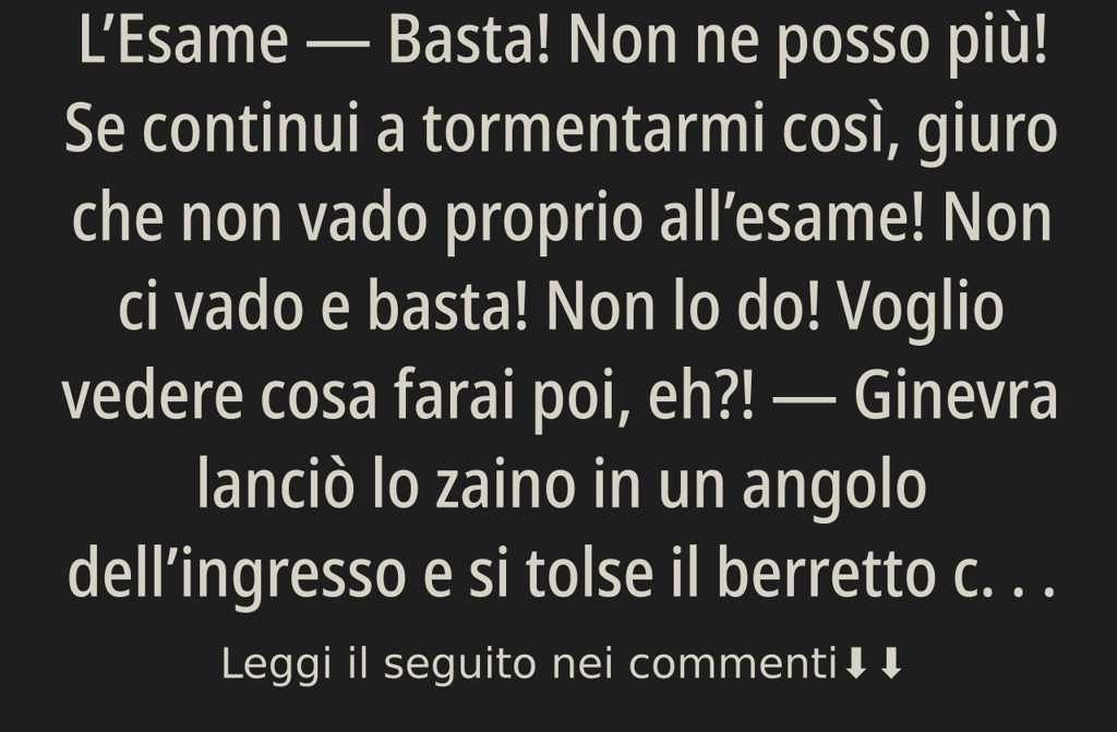 Perché domani ho la simulazione e devo dormireGinevra sorrise, ancora sentendo sulle guance il sale delle lacrime asciutte. Guardò la madre, i suoi occhi pieni di sonno e di paura, e per la prima volta sentì dentro una gratitudine sottile ma vera. Si sedette, allungando le mani verso quelle della mamma, intrecciandole con la timidezza antica delle bambine.
