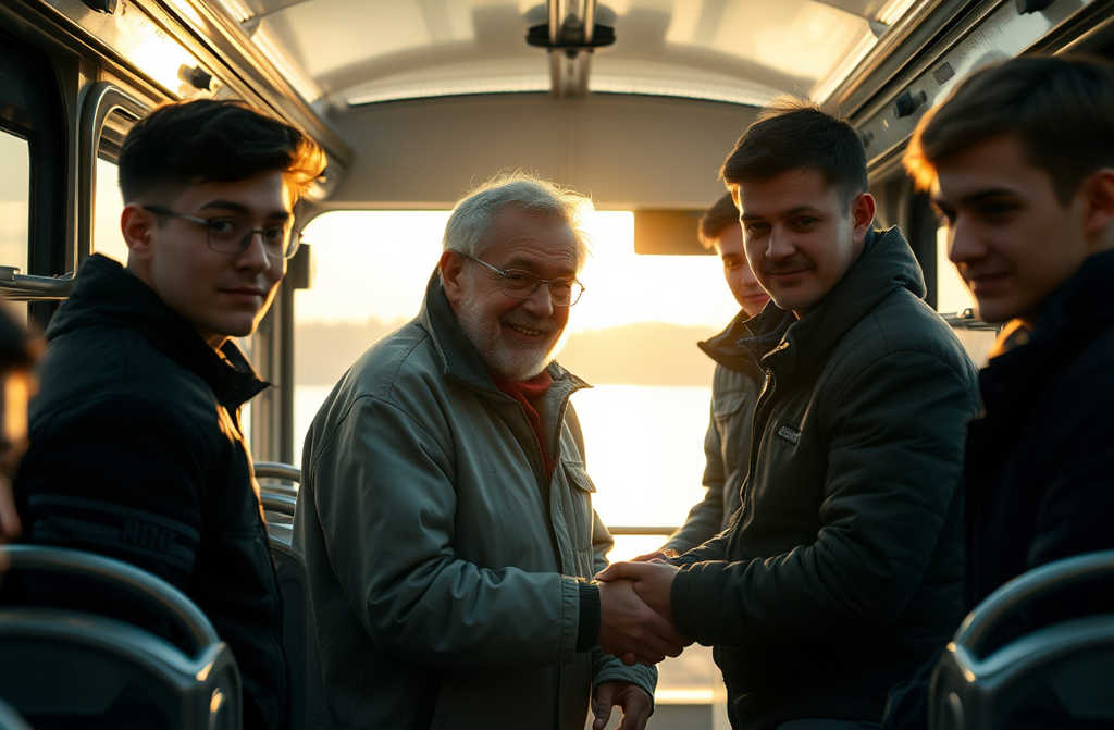 Tra chi era seduto, soli viaggiatori raccolti dal solo mezzo notturno disponibile, nessuno osò dire nulla ai ragazzi. Questi, infiammati dal vino e dallenergia giovanile, discutevano ad alta voce di conquiste e bravate, alzando la voce luno sullaltro, tra risate rozze e brindisi improvvisati. Trasformarono lultima parte del filobus in una vera osteria, risuonando le bottiglie vuote dopo ogni scoppio di risa.