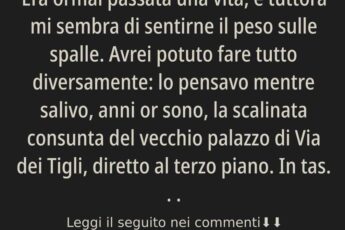 Il divorzio era stato tre anni prima. Arturo se nera andato nel ventitré, da una collega, Giulia della contabilità, una donna che rideva di più e domandava meno. Non avevo pianto allora, solo preparato le sue cose in due valigie, lasciate allingresso. “Prendi”. E lui le aveva prese.