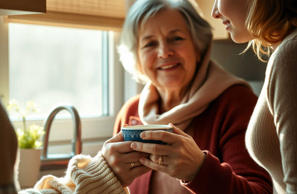 Laura guarda la tazza. La mano si avvicina al manico, sente il caldo della ceramica. Capisce che quel piccolo oggetto è per la nonna il simbolo del posso fare da sola.