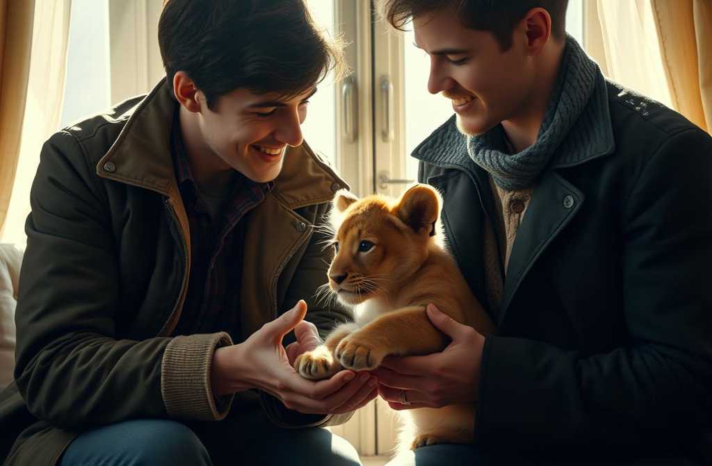 Un giorno, passeggiando per le vie del centro, si imbatterono in un negozio di animali esotici. Nella vetrina, pappagalli, scimmiette e rettili attiravano lattenzione, ma ciò che li colpì davvero fu una piccola gabbia dove riposava un cucciolo di leone. Non più grande di un gattino, aveva occhi enormi e tristi che sembravano capire ogni cosa.