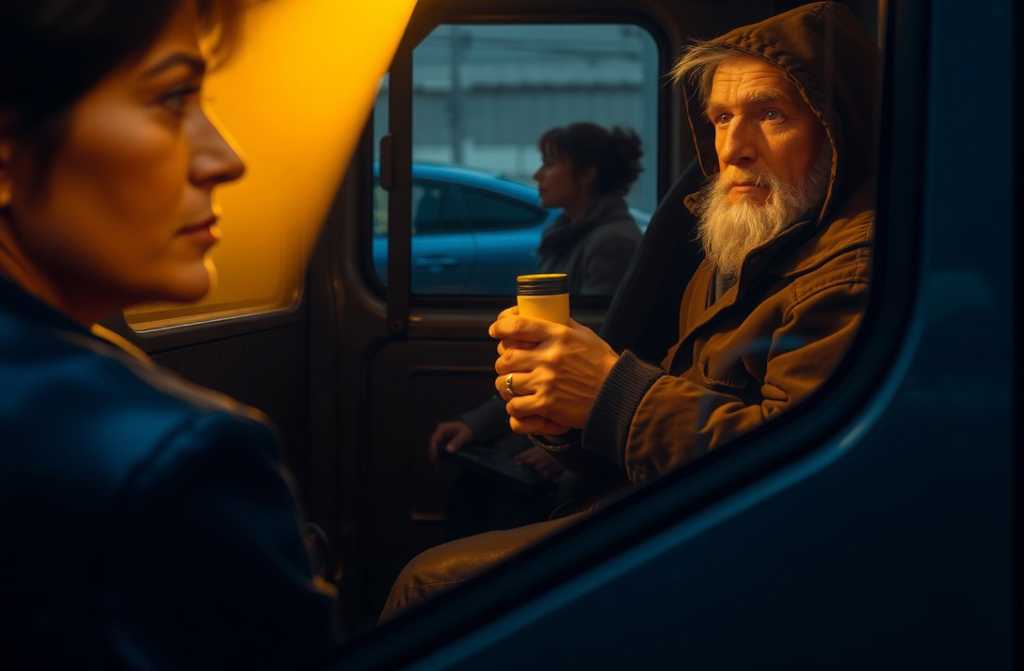 Sarà che la moglie lha cacciato? ipotizza. Litigano, lei lo sbatte fuori, e lui prende lautobus per passare la notte?
